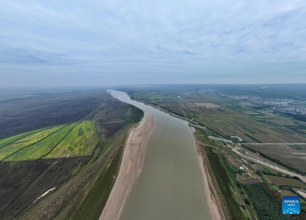 This aerial photo taken on Oct. 7, 2023 shows the Luoyang section of Yellow River, central China's Henan Province. (Xinhua/Xing Guangli)