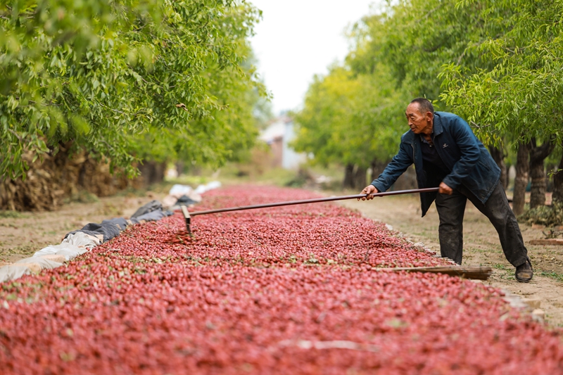 In pics: farmers dry golden-silk jujubes on sunny day in E China's Shandong (4)