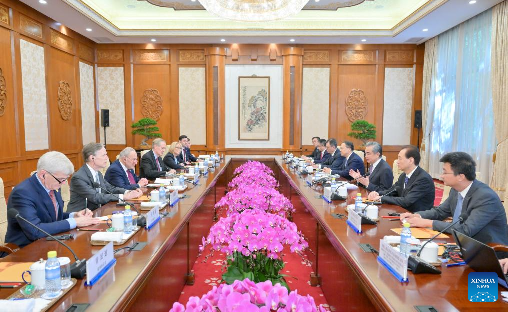 Chinese Foreign Minister Wang Yi, also a member of the Political Bureau of the Communist Party of China Central Committee, meets with a U.S. congressional delegation led by Senate Majority Leader Chuck Schumer in Beijing, capital of China, Oct. 9, 2023. (Xinhua/Gao Jie)