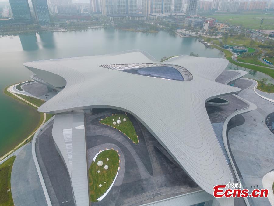 Drone photo shows Chengdu Science Fiction Museum, the main venue for the 2023 Chengdu Science Fiction Convention, in southwest China's Sichuan Province, Oct. 10, 2023. (Photo: China News Service/Zhang Lang)