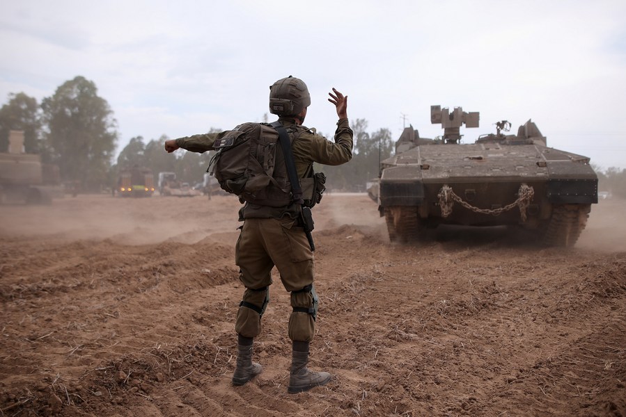 GAZA/JERUSALEM, Oct. 10 (Xinhua) -- Israel intensified on Tuesday its airstrikes on the Gaza Strip and bolstered its forces along the border, the fourth day of one of the most intense clashes between Israel and Hamas militants in decades.
