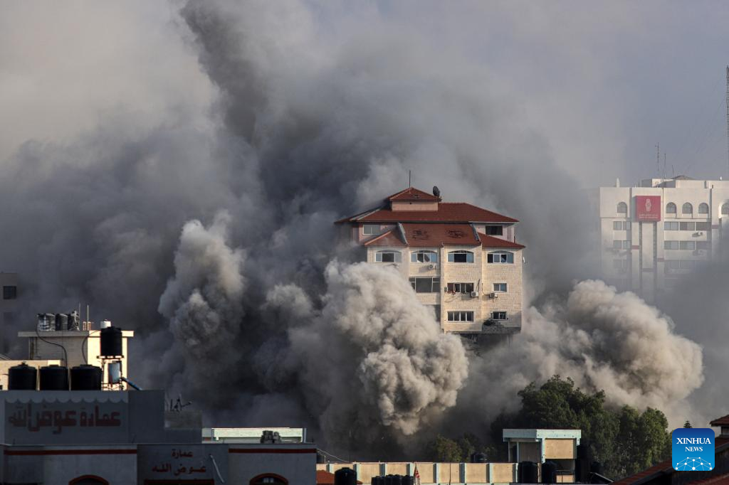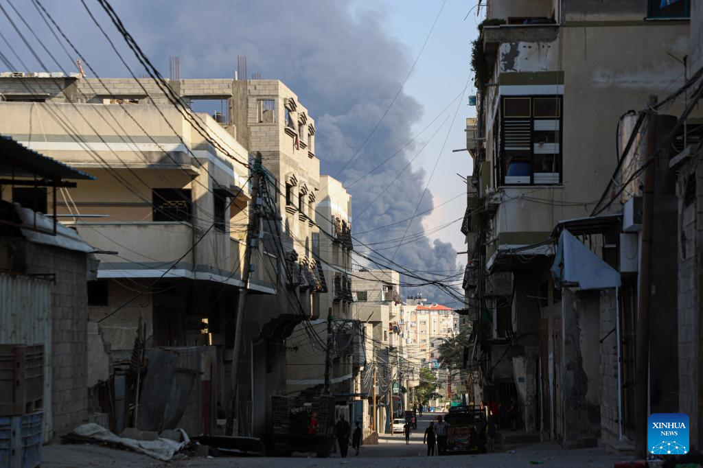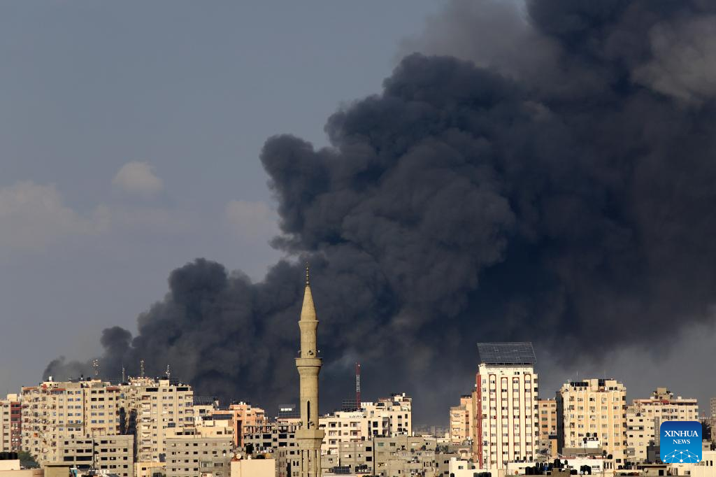 Smoke billows following an Israeli airstrike in Gaza City, on Oct. 11, 2023. (Photo by Rizek Abdeljawad/Xinhua)