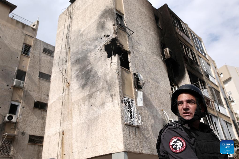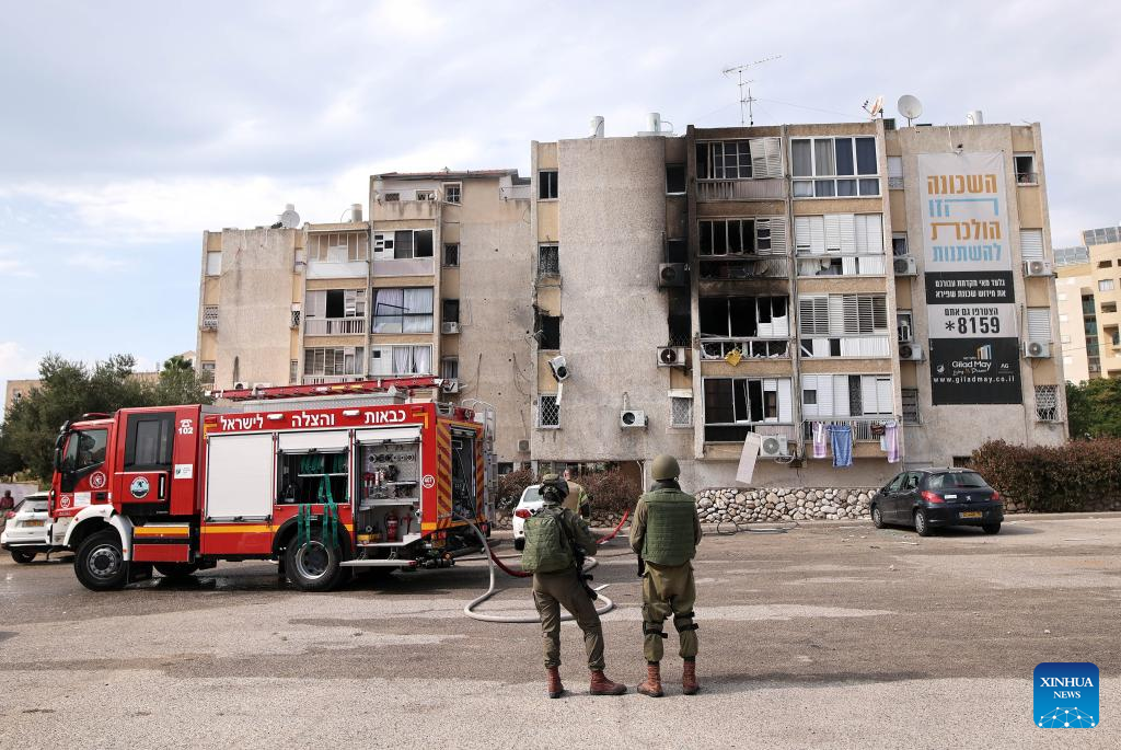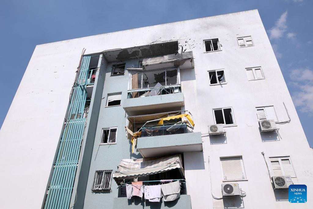 Photo taken on Oct. 11, 2023 shows a building damaged in rocket attacks from Gaza, in Ashkelon, Israel. (Ilan Assayag/JINI via Xinhua)