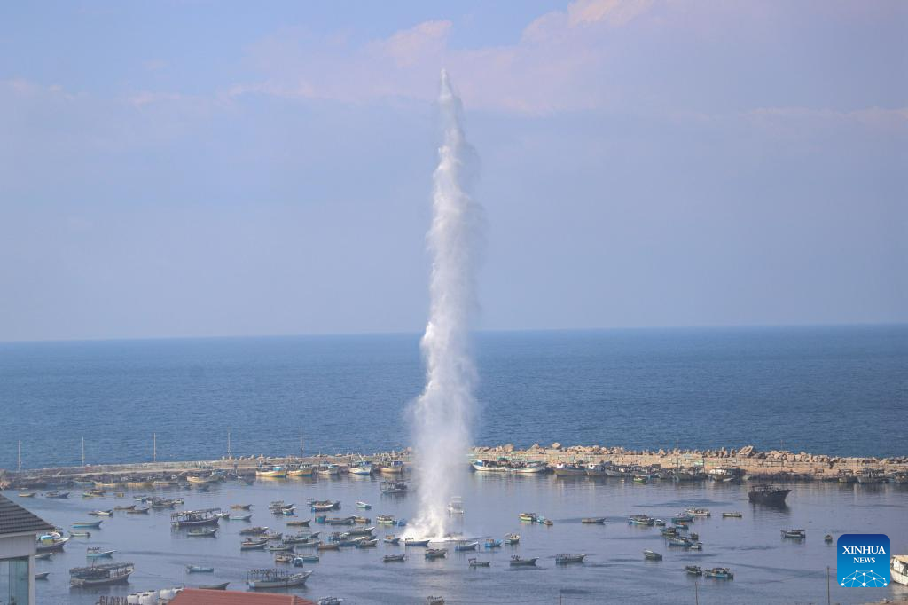 Smoke rises following an Israeli strike on the port of Gaza City, on Oct. 11, 2023. (Photo by Rizek Abdeljawad/Xinhua)