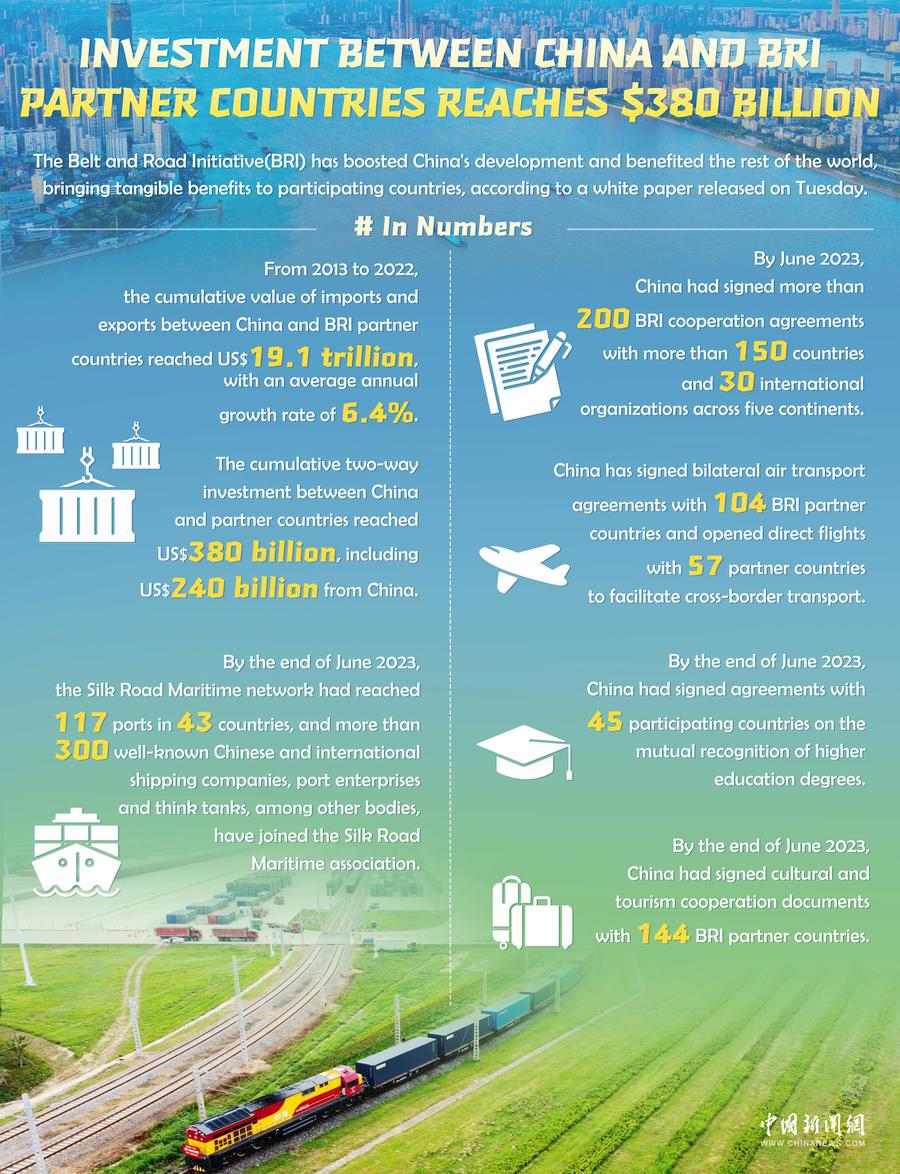 The Belt and Road Initiative has boosted China's development and benefited the rest of the world, bringing tangible benefits to participating countries, according to a white paper released by China's State Council Information Office on Tuesday.