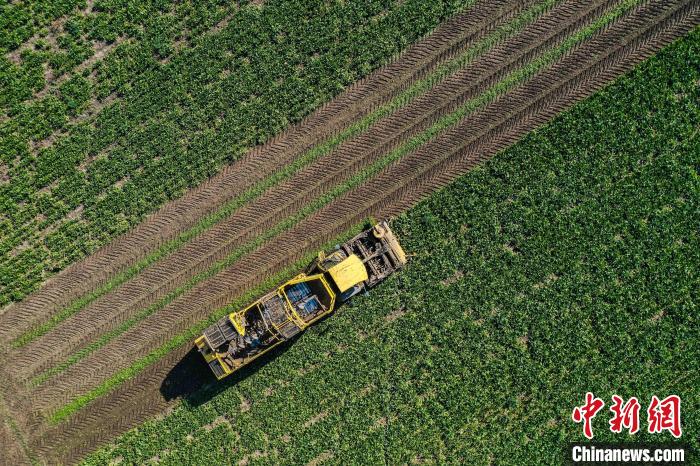 The production of sugar beets in Xinyuan county has been fully mechanized. Each of the automated machines can harvest 150 mu (10 hectares) to 200 mu of sugar beets per day, 100 times to over 150 times more efficient than manual labor. Sugar beet growers can simply sit back and watch machines complete the autumn harvest.