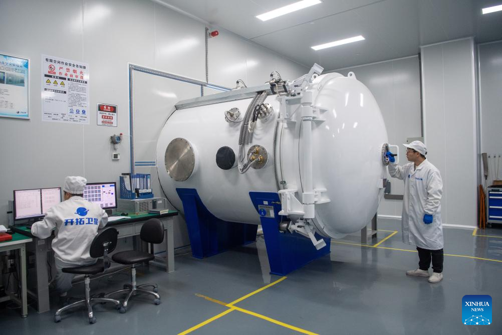 Staff members conduct experiments at a satellite technology company in Qijiang District, southwest China's Chongqing Municipality, Oct. 12, 2023. Qijiang District of Chongqing was once an industrial base and a major gear manufacturing city in western China. In recent years, the local government has focused on building an innovation ecosystem that revolves around key elements such as production, human resources, and urban development. This effort has led to a gradual transformation of the district from a resource-based city to a more diversified economy. (Xinhua/Tang Yi)