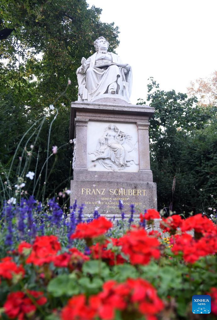 This photo taken on Oct. 2, 2023 shows a monument of Franz Schubert in Vienna, Austria.
