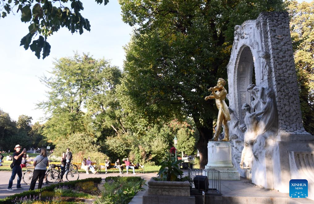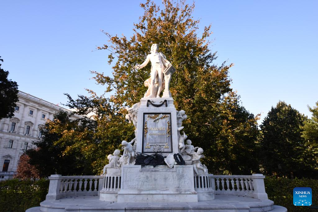 This photo taken on Sept. 7, 2023 shows a monument of Wolfgang Amadeus Mozart in Vienna, Austria.