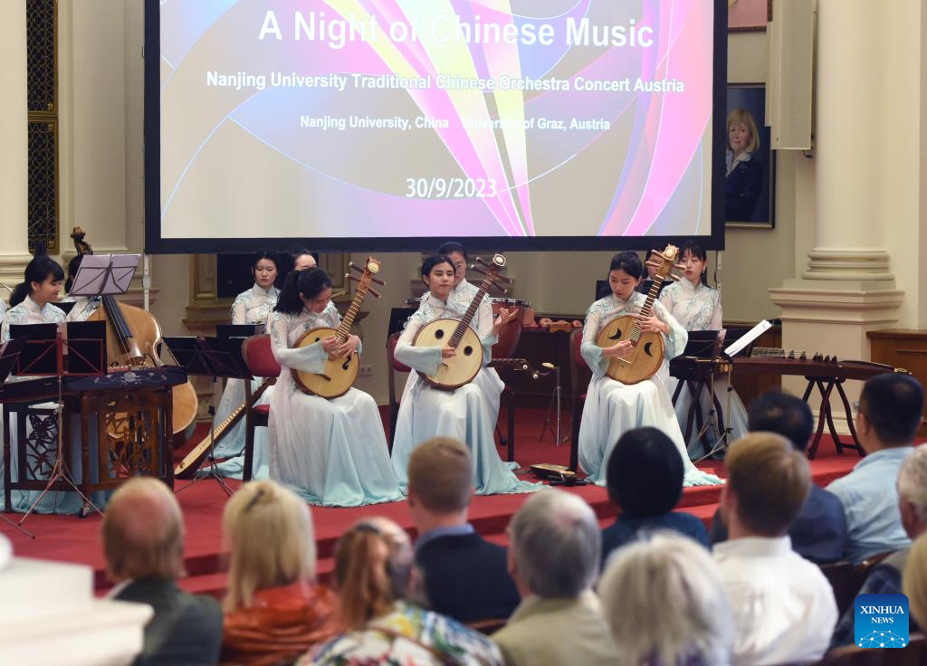 Members of Nanjing University Traditional Chinese Orchestra perform in Graz, Austria, Sept. 30, 2023.