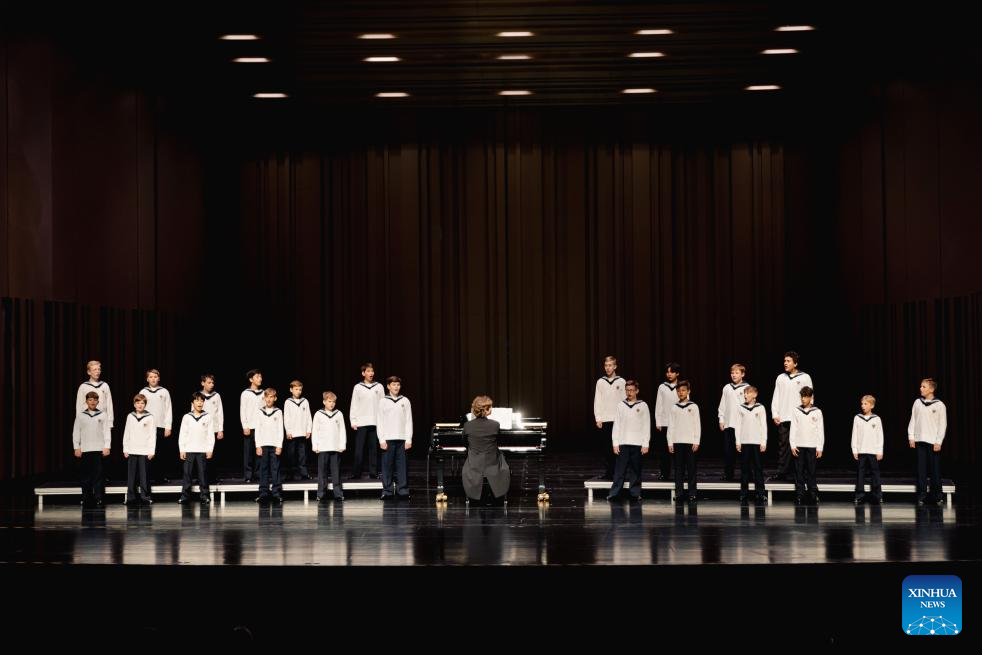 Members from the Vienna Boys' Choir perform in Suzhou, east China's Jiangsu Province, Sept. 26, 2023.