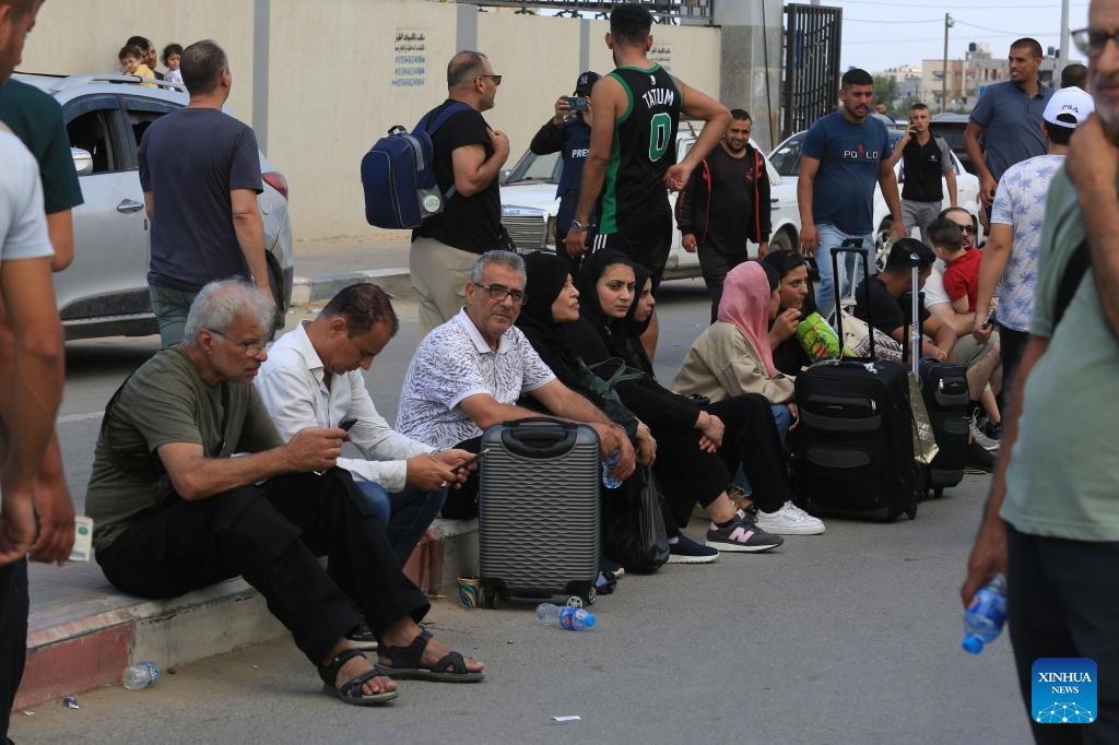 GAZA, Oct. 14 (Xinhua) -- Hundreds of foreigners flocked on Saturday to the Rafah border crossing, the only crossing point between Egypt and the Gaza Strip, in an attempt to flee the Palestinian enclave.