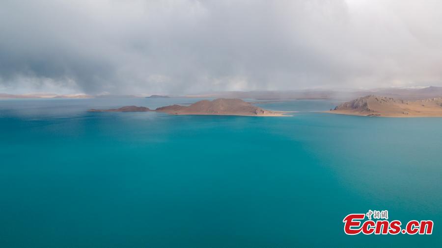 Aerial view of Serling Tso Lake in southwest China's Tibet Autonomous Region. It is the largest lake in Tibet and the second-biggest saltwater lake in China, with an altitude of 4,530 meters. (Photo: China News Service/Jiang Feibo)