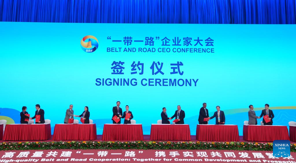 Representatives attend the signing ceremony at the Belt and Road CEO Conference in Beijing, capital of China, Oct. 17, 2023. More than 1,000 people including government officials, representatives of international organizations and renowned entrepreneurs attended the conference. (Xinhua/Wang Yuguo)