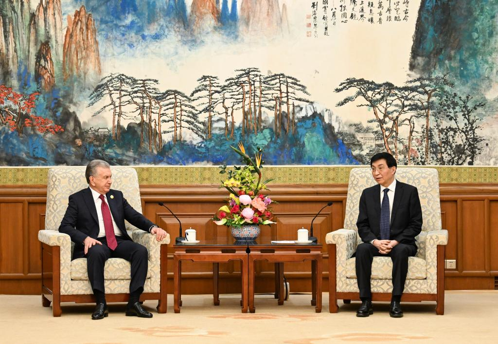 BEIJING, Oct. 18 (Xinhua) -- China's top political advisor Wang Huning on Wednesday met with Uzbek President Shavkat Mirziyoyev, who is in Beijing for the third Belt and Road Forum for International Cooperation.