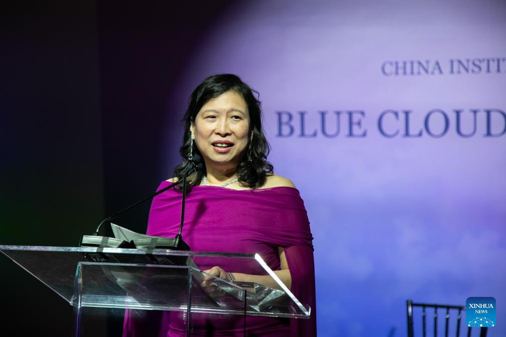 Singaporean businesswoman and philanthropist Michelle Liem speaks during the China Institute's annual Blue Cloud gala in New York, the United States, on Oct. 17, 2023. The China Institute's annual Blue Cloud gala honored here Tuesday eight people for promoting cross-cultural understanding between China and the United States. (Photo by Michael Nagle/Xinhua)