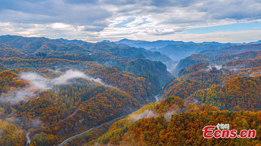 Intoxicating landscape at Shennongjia National Park as fall colors travel down the mountainsides from the highest elevations to the foothills in central China's Hubei Province. (Photo: China News Service/Li Kaiyu)