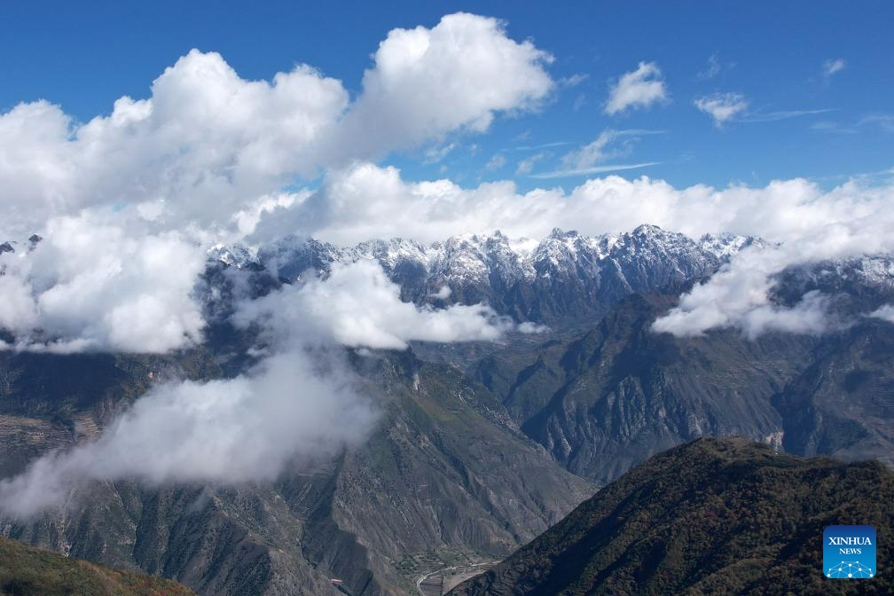 This photo taken on Oct. 19, 2023 shows the autumn scenery in Zhouqu County, Gannan Tibetan Autonomous Prefecture, northwest China's Gansu Province. (Xinhua/Fan Peishen)
