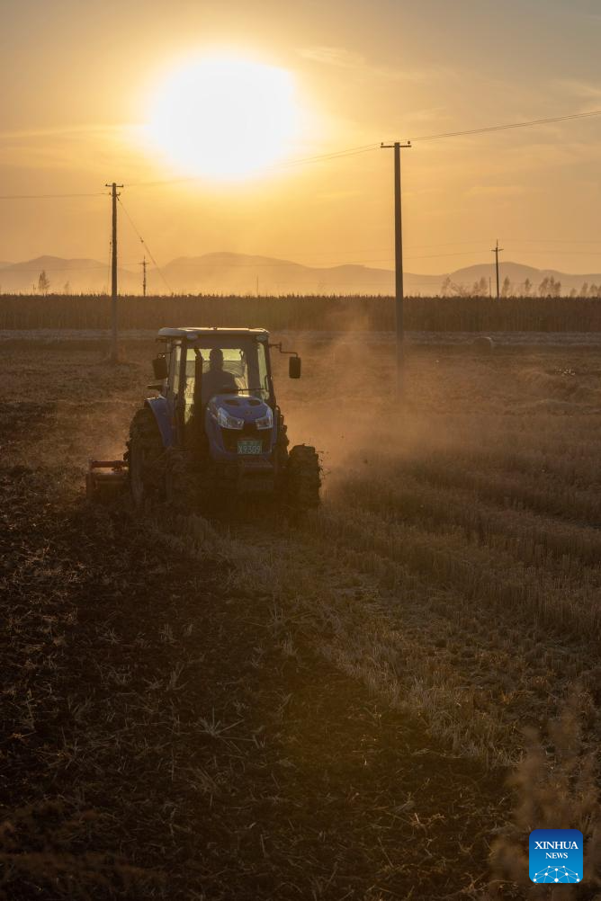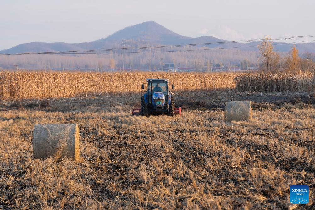 A farmer prepares a field for future planting in Shangzhi City, northeast China's Heilongjiang Province, Oct. 18, 2023. China's top grain producer Heilongjiang Province is embracing the harvest season of this year while preparing for next year's planting. (Xinhua/Xie Jianfei)