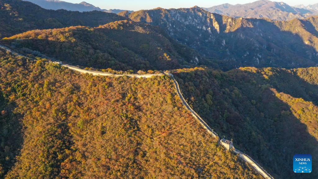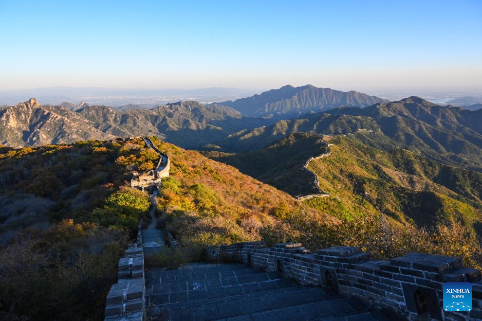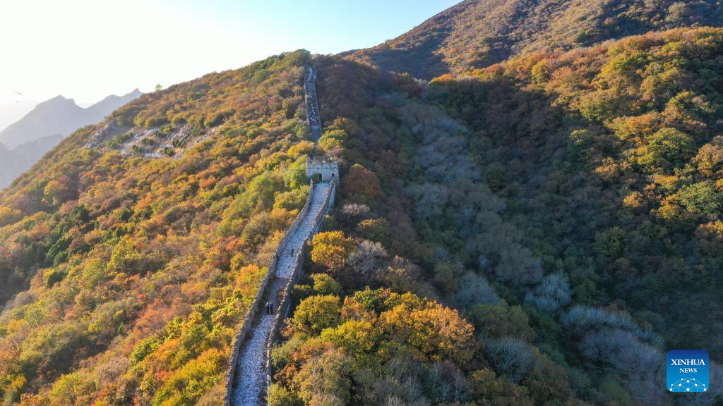 This photo taken on Oct. 21, 2023 shows the autumn scenery of the Mutianyu section of the Great Wall in Beijing, capital of China. (Xinhua/Chen Yehua)