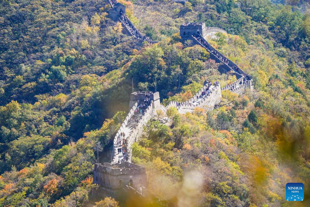 Tourists visit the Mutianyu section of the Great Wall in Beijing, capital of China, Oct. 21, 2023. (Xinhua/Chen Yehua)