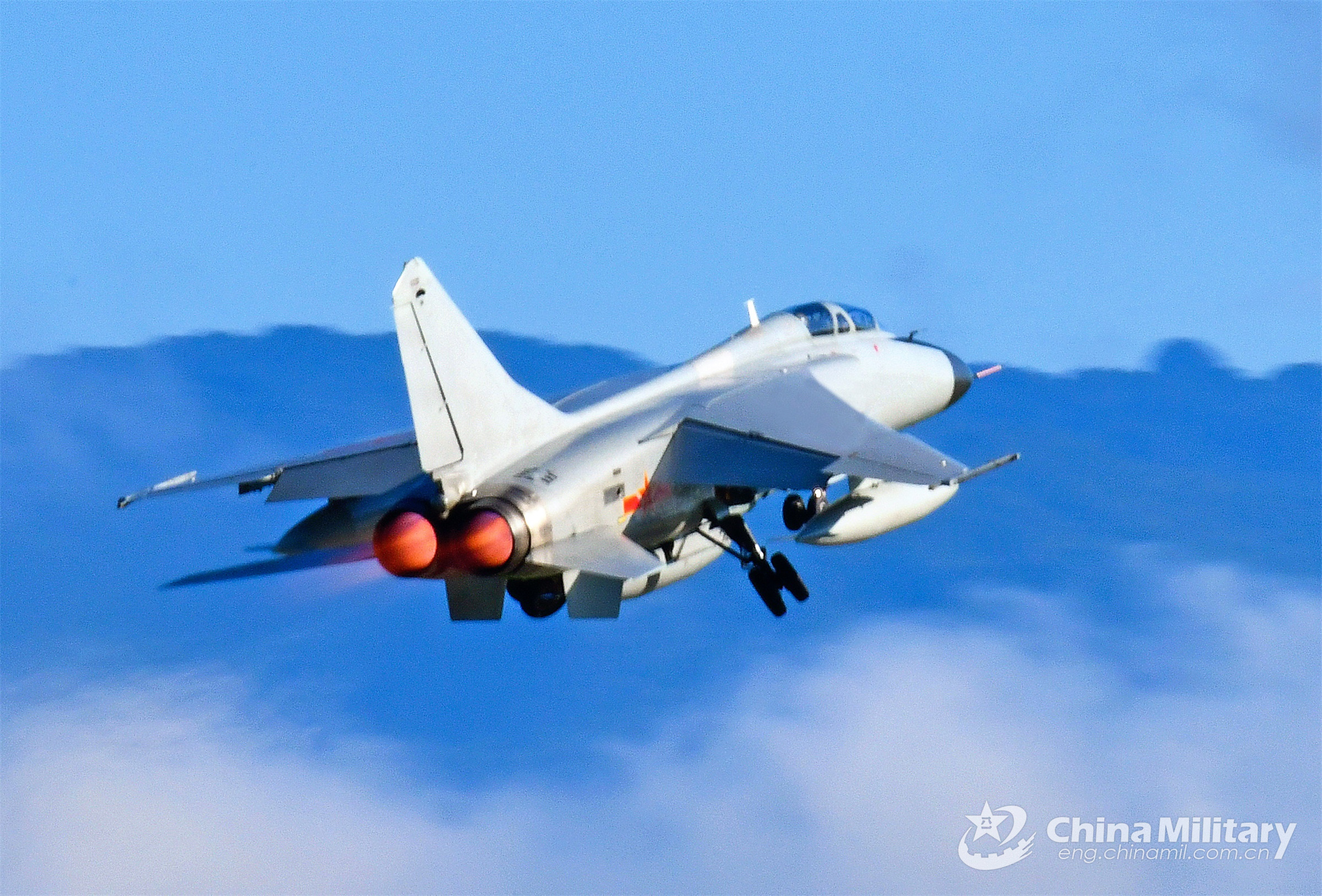 A fighter jet attached to an aviation brigade with the air force under the PLA Southern Theater Command soars into sky in the multi-subject flight training on September 20, 2023. (eng.chinamil.com.cn/Photo by Zhuo Lingpeng)
