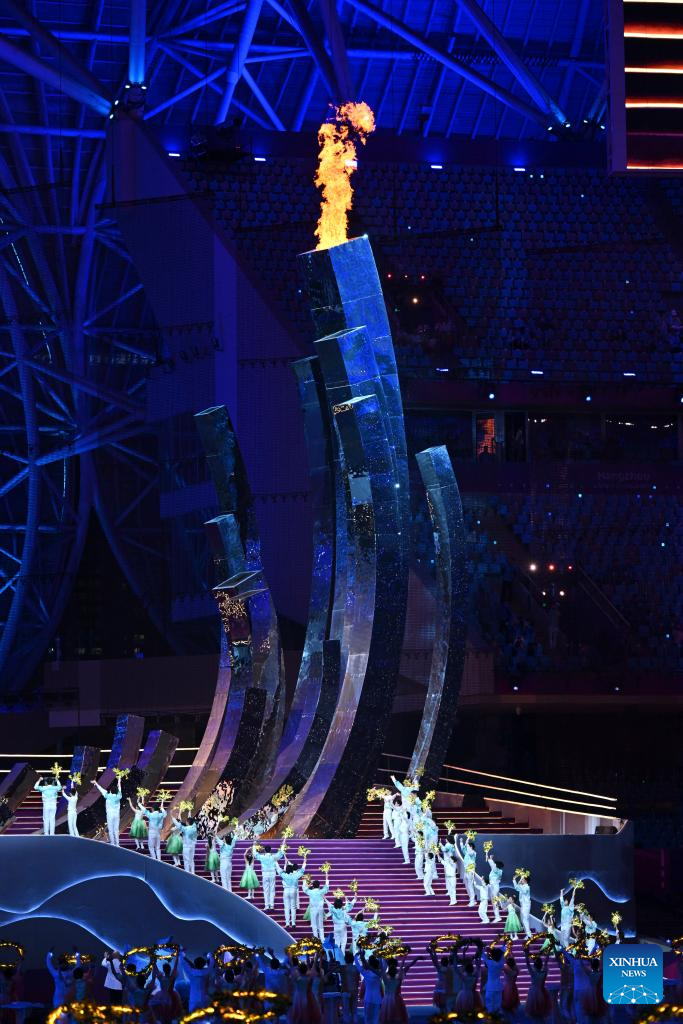 The cauldron is lit during the opening ceremony of the 4th Asian Para Games in Hangzhou of east China's Zhejiang Province, on Oct. 22, 2023. (Xinhua/Wu Zhizun)