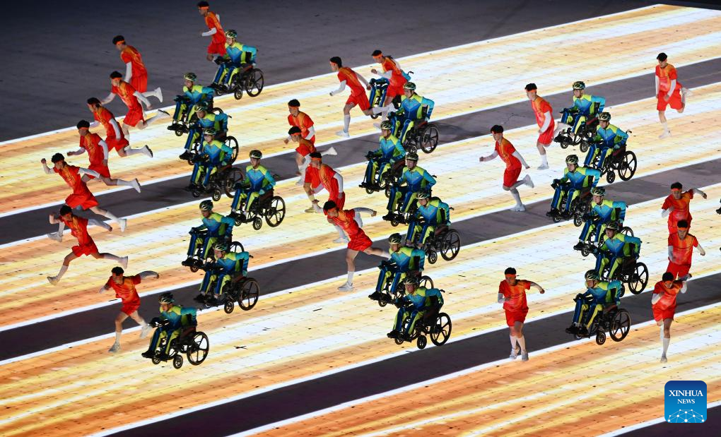 Artists perform during the opening ceremony of the 4th Asian Para Games in Hangzhou of east China's Zhejiang Province, on Oct. 22, 2023. (Xinhua/Yang Zhisen)