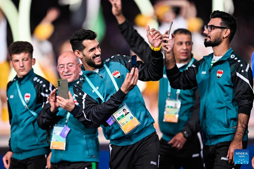 Delegation of Iraq parade into the Hangzhou Olympic Sports Center Stadium during the opening ceremony of the 4th Asian Para Games in Hangzhou of east China's Zhejiang Province, on Oct. 22, 2023. (Xinhua/Wu Zhizun)
