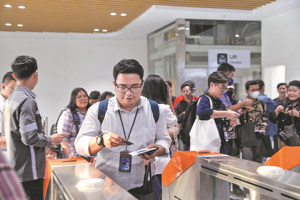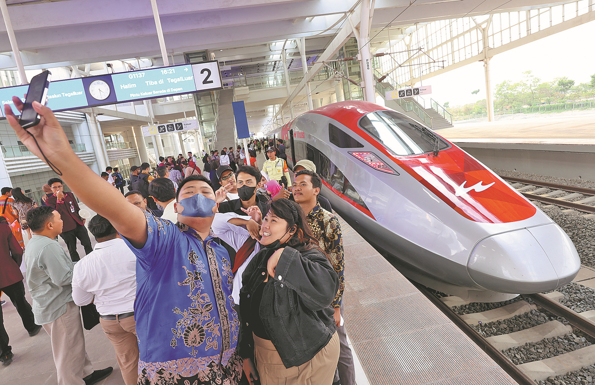 Passengers take the first commercial ride on the Jakarta-Bandung high-speed line in Indonesia. EDMOND TANG/CHINA DAILY/XU QIN/XINHUA
