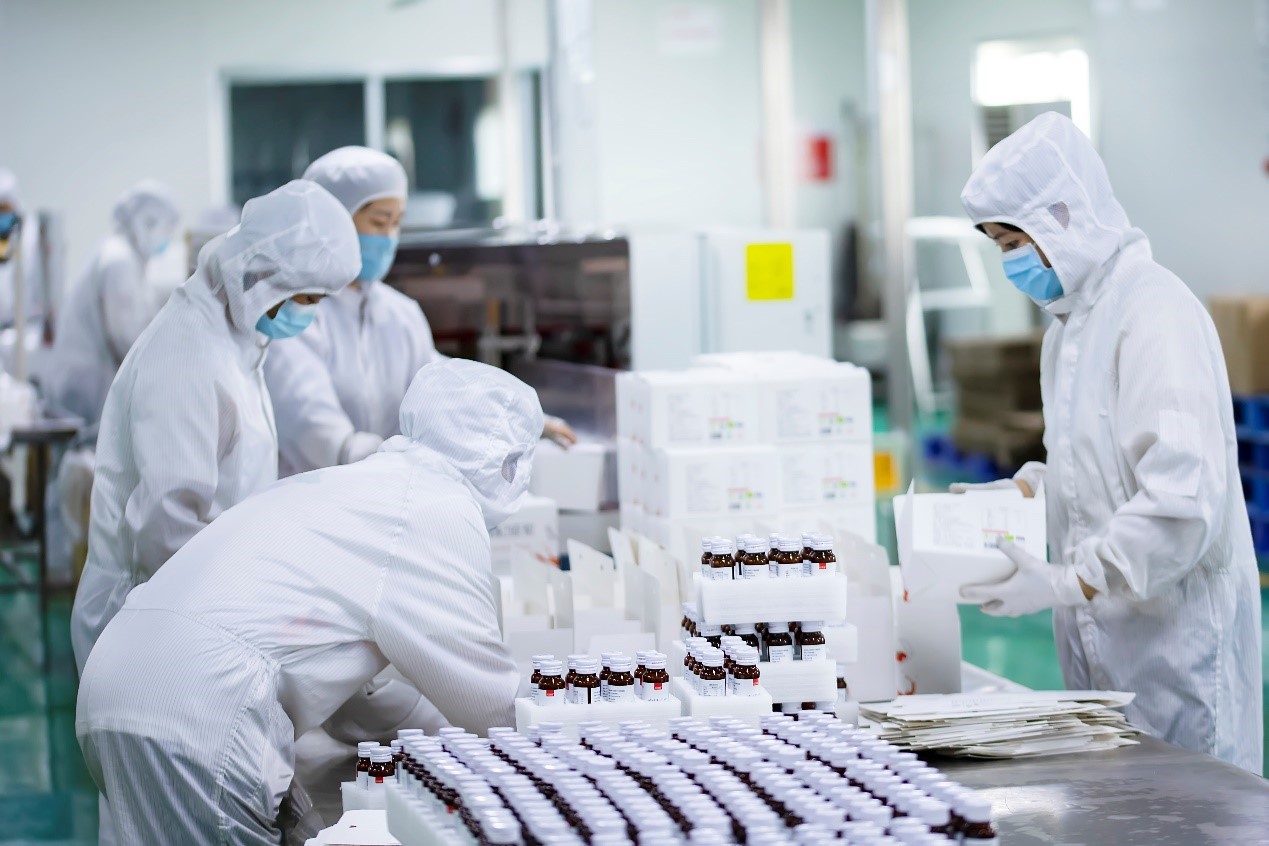 Employees work on a production line of a goji berry company in Zhongning county, Zhongwei, northwest China's Ningxia Hui Autonomous Region. (Photo courtesy of the Publicity Department of the CPC Zhongning County Committee)