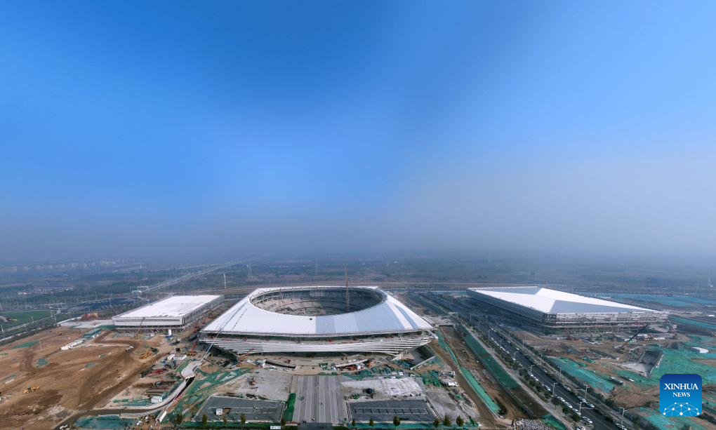 This aerial photo taken on Oct. 24, 2023 shows the construction site of the stadium of the Xiong'an sports center in Xiong'an New Area, north China's Hebei Province.