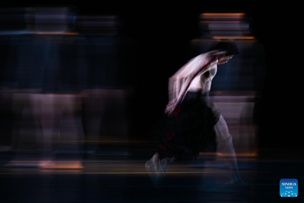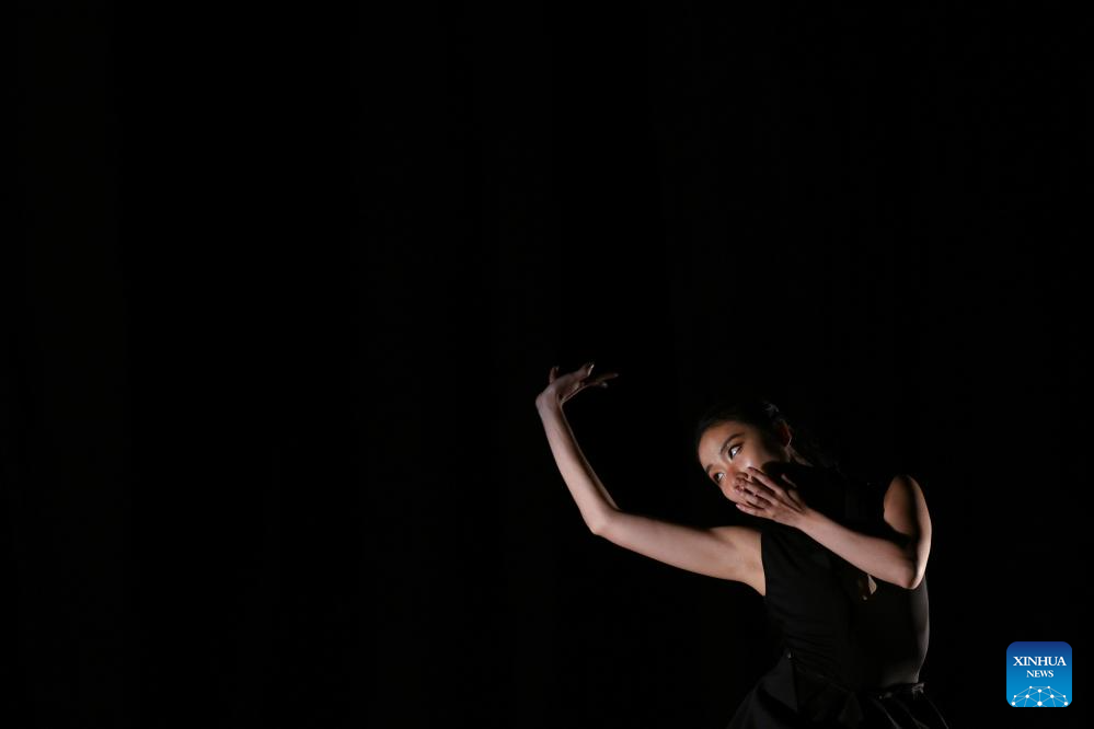 A dancer from China's Beijing Dance Theater is pictured while performing the dance drama "Three Poems" at the Palacio de Bellas Artes in Mexico City, Mexico, Oct. 24, 2023. (Xinhua/Xin Yuewei)