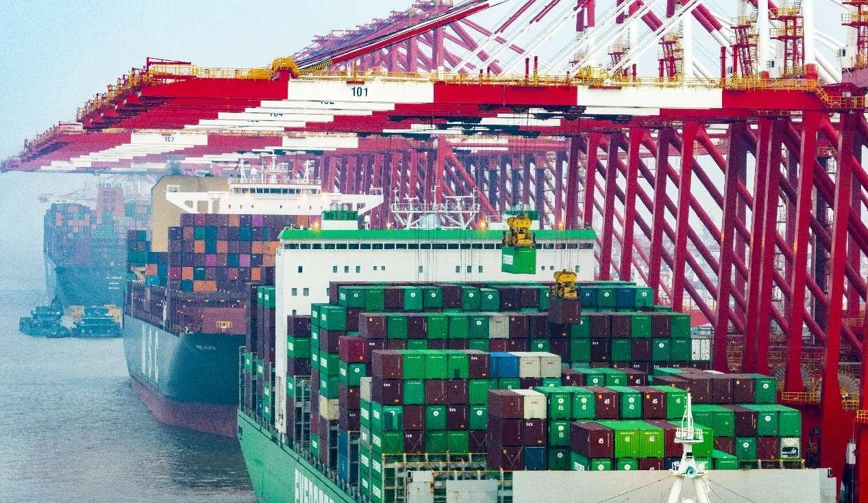 Vessels are docked at the Yangshan Deep Water Port in Shanghai. (People's Daily Online/Ji Haixin)