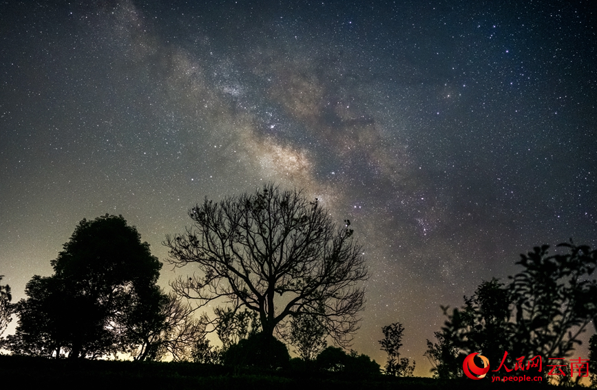 Photo shows a captivating autumn view of the starry sky above a tea farm located in the west of Pu'er mountain in Ning'er Hani and Yi Autonomous County, Pu'er city, southwest China's Yunnan Province. (Photo/Rao Xuesong)