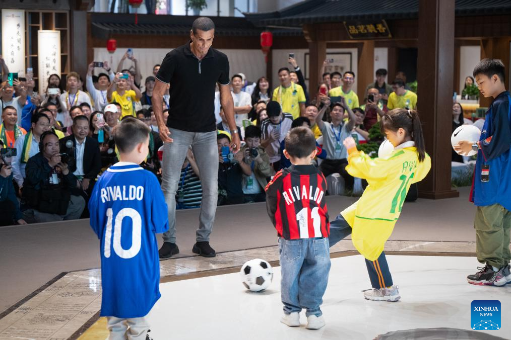 Brazilian football legend Rivaldo attends event in C China's Hubei