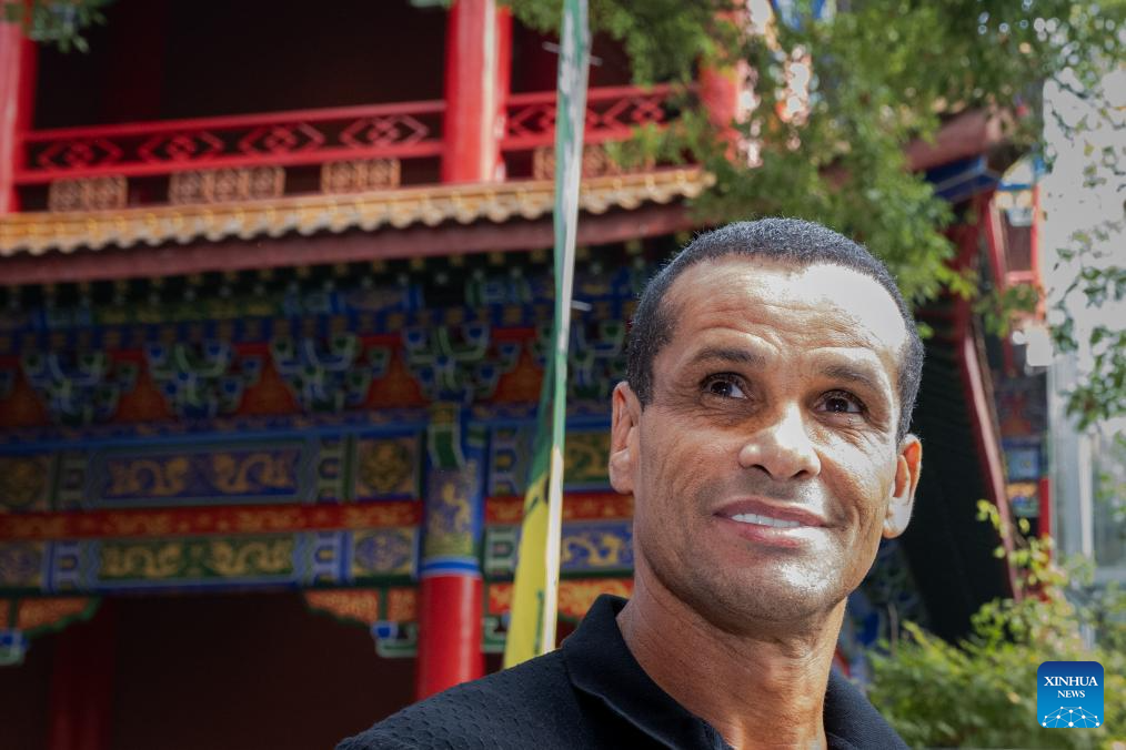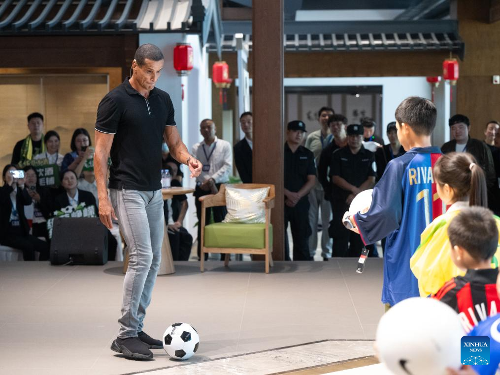 Brazilian football legend Rivaldo attends an event for 2023 World Super Footballer Games in Daye, central China's Hubei Province, Oct. 26, 2023. (Xinhua/Xiao Yijiu)