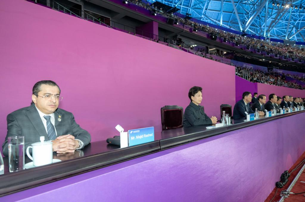 After lowering the APC flag and playing the APC anthem, Hangzhou mayor Yao Gaoyuan handed over the flag to Rashed, who entrusted it to Hideaki Ohmura, governor of Aichi prefecture and Hideo Nakata, deputy mayor of Nagoya, the host city of the 2026 Asian Para Games.