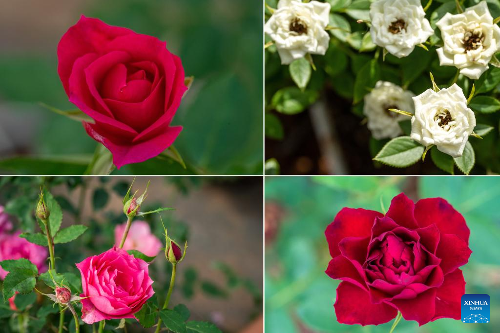 This combined photo shows new species of roses at a roses plantation demonstration garden of a modern agricultural park in Anning City, southwest China's Yunnan Province. (Xinhua/Hu Chao)