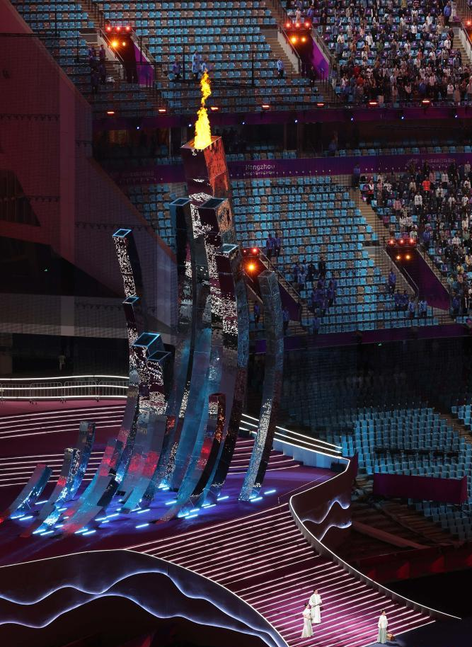 The main torch is lit at the closing ceremony of the 4th Asian Para Games held at the Hangzhou Olympic Sports Center Stadium in Hangzhou, East China's Zhejiang province, Oct 28, 2023. [Photo/Xinhua]
