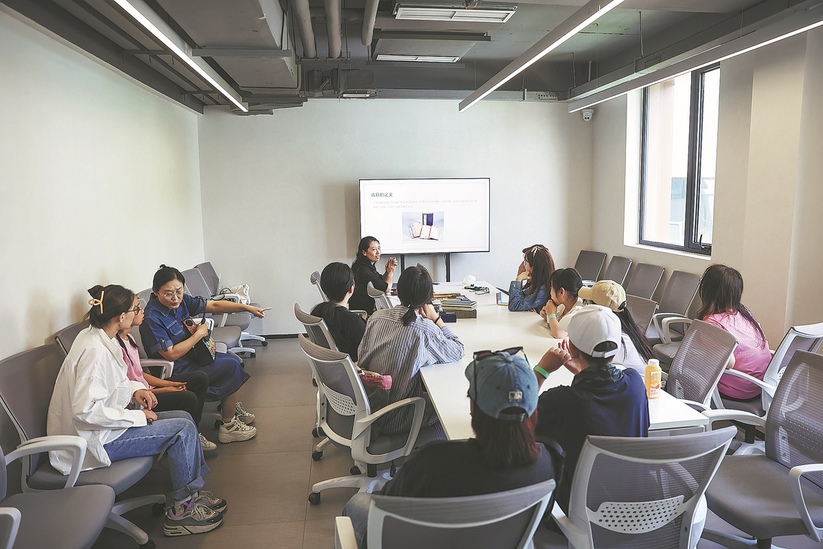 A class on restoring ancient books is held at the park. [Photo/China Daily]