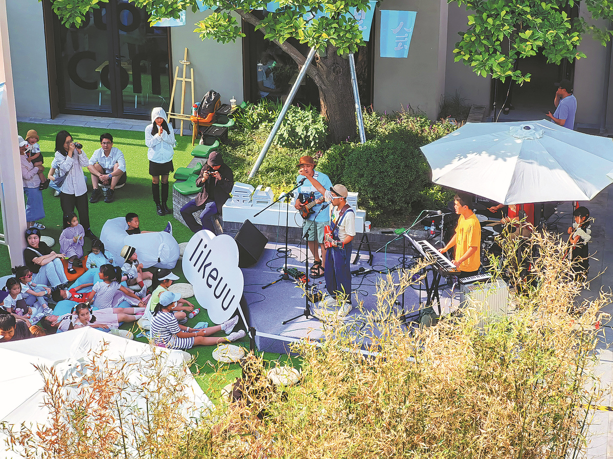 Visitors watch an open-air art performance at Jintai 5Lmeet Cultural Industrial Park in Beijing's Dongcheng district. [Photo/China Daily]