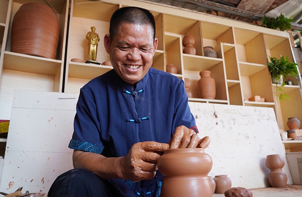 Zouxu township has also encouraged veteran potters to return and start a business, and selected artists to study and attend training sessions at universities like Guangxi University and Jingdezhen Ceramic University, mobilizing them to participate in various competitions to improve their skills. This has nurtured three red clay pottery inheritors, including Yan.