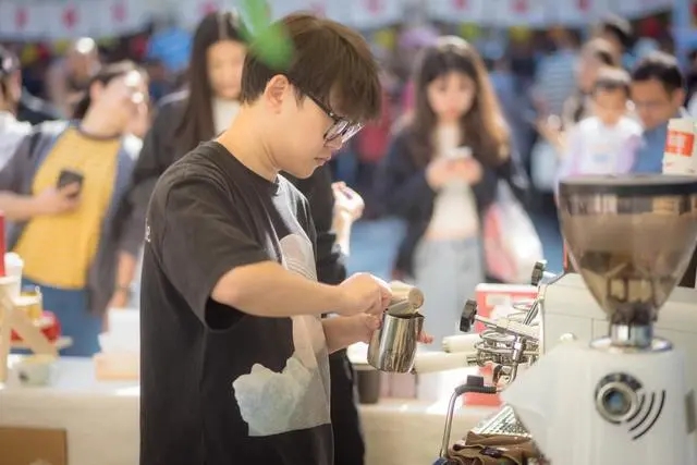 At the Zhangshu trade fair, there were long queues for a pharmaceutical company's pop-up store selling coffee infused with Chinese medicinal herbs such as ginseng, wolfberry, tangerine peel, and honeysuckle.