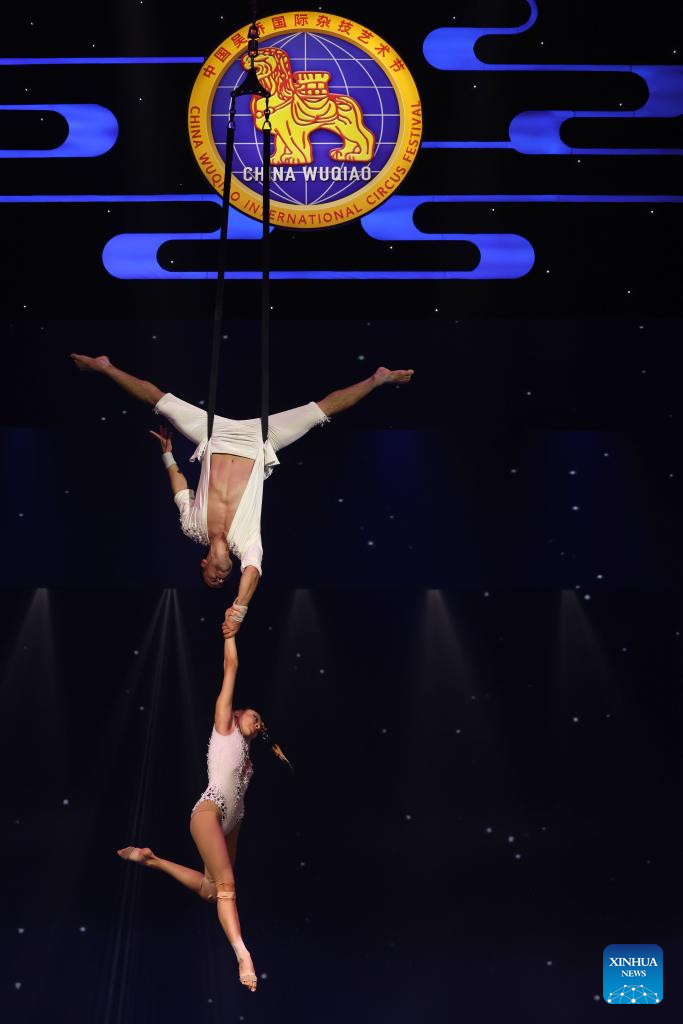 Acrobats perform during the closing ceremony of the 19th China Wuqiao International Circus Festival in Cangzhou, north China's Hebei Province, Oct. 30, 2023. (Xinhua/Luo Xuefeng)