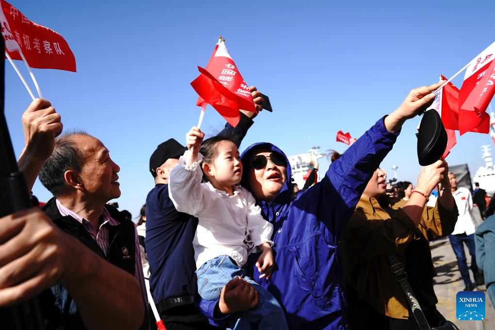 People see off China's 40th Antarctic scientific expedition team at a base dock in Shanghai, east China, Nov. 1, 2023. (Xinhua/Zhang Jiansong)