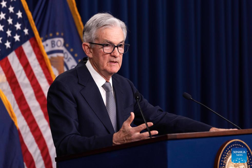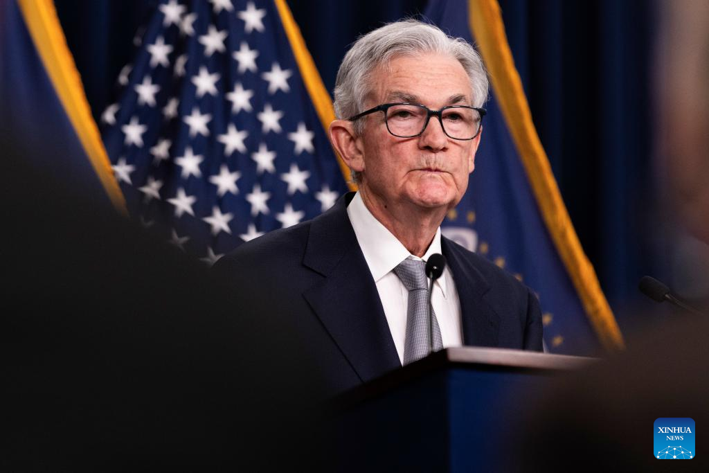 U.S. Federal Reserve Chair Jerome Powell attends a press conference in Washington, D.C., the United States, on Nov. 1, 2023. The U.S. Federal Reserve on Wednesday left interest rates unchanged at a 22-year high of 5.25-5.5 percent, as yields on long-term U.S. Treasury bonds have spiked in recent months. (Photo by Aaron Schwartz/Xinhua)