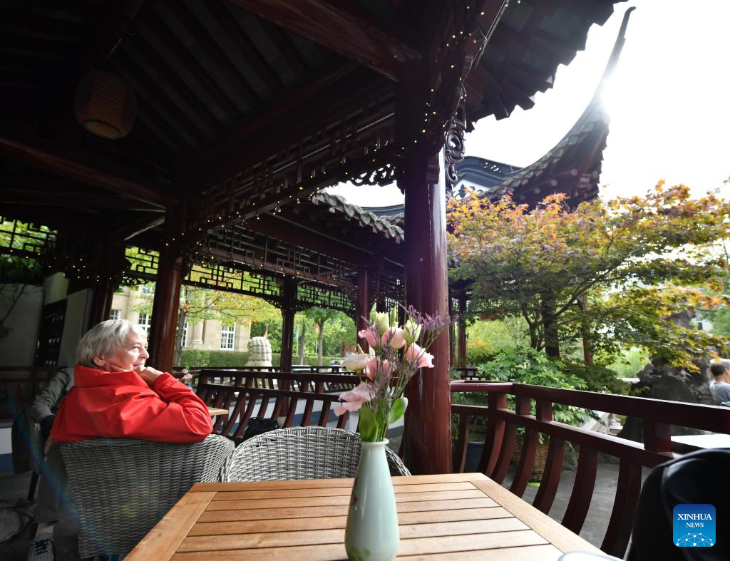 This photo taken on Sept. 27, 2023 shows people dining at Yuyuan Garden in Hamburg, Germany. (Xinhua/Ren Pengfei)