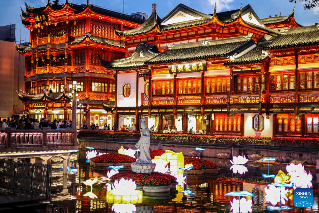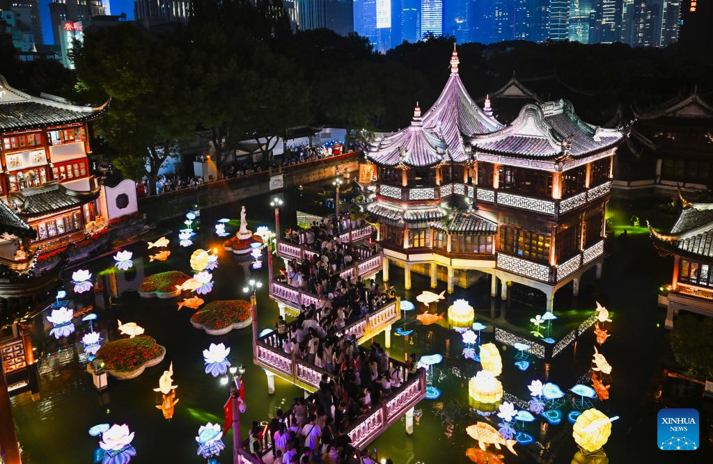 This photo taken on Sept. 29, 2023 shows the night view of Yuyuan Garden in east China's Shanghai. (Xinhua/Liu Ying)