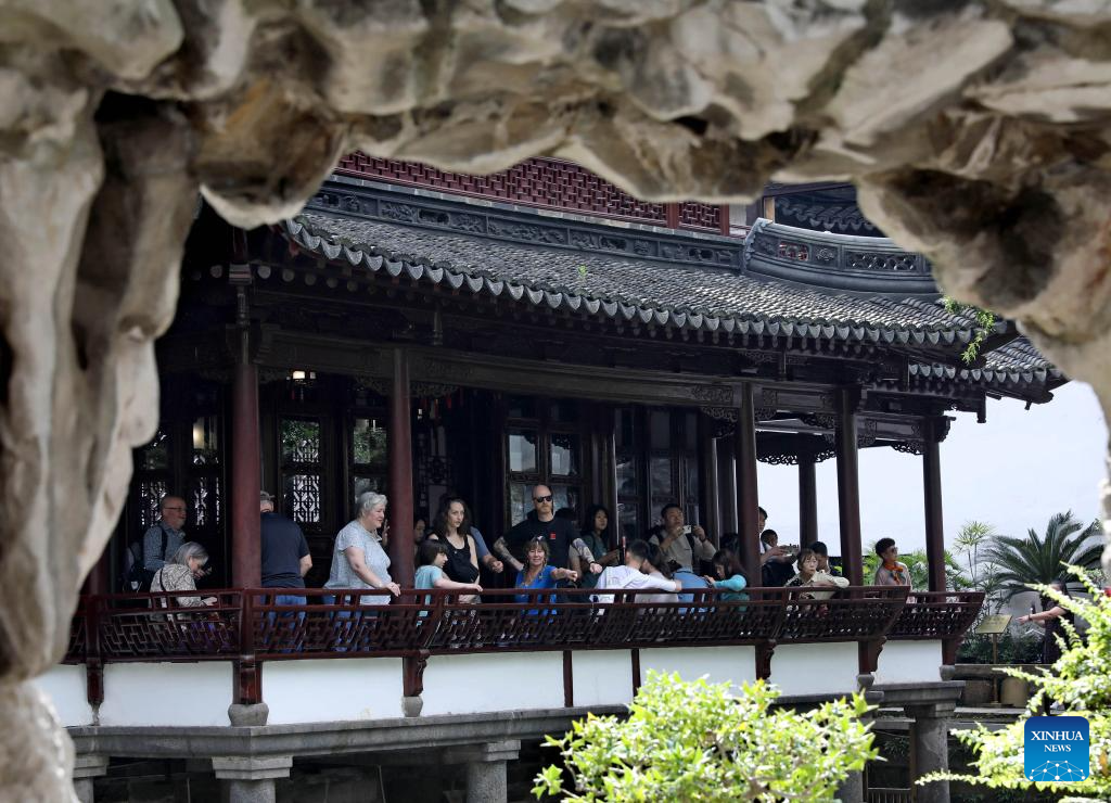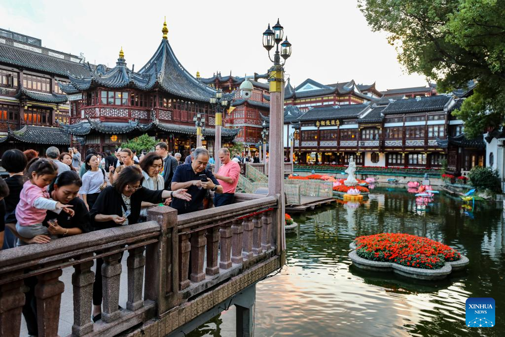 This photo taken on Oct. 12, 2023 shows tourists visiting Yuyuan Garden in east China's Shanghai. (Xinhua/Liu Ying)